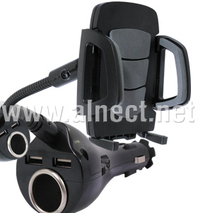 Alat ini berupa dudukan atau docking/holder sekaligus terintegrasi charger USB 2 port pengisian baterai cepat DC 5V/2A dan soket bypass untuk pematik rokok mobil, sehingga Anda tidak perlu kehilangan soket pematik rokok pada saat menggunakan docking ini. Alat ini khusus dipasangkan di soket pematik rokok di dashboard mobil di dalam ruang kemudi yang juga dapat digunakan sebagai tempat atau dudukan untuk ponsel pintar (Smartphone), Android Note, Apple iPhone, PDA sampai ukuran layar LCD 5,5 inci sehingga mudah dibawa-bawa serta dioperasikan ketika sedang berpergian menggunakan mobil pribadi.
