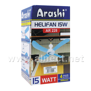 Kipas gantung portable ARASHI Helifan ini diproduksi oleh Hannochs Lighting and Electronics yang merupakan salah satu perusahan terbesar di bidang Elektrik dunia yang sudah bersertifikat SNI sehingga aman di gunakan. Kipas Angin gantung ini memiliki empat baling-baling berukuran 50cm yang dapat di copot pasang sehingga memungkinkan bisa dibawa kemana saja. Hembusan angin yang dihasilan kipas gantung portabel ini cukup kencang serta tidak berisik, juga disediakan tombol power on/off yang sudah terintegrasi di kabel listriknya sehingga sangat mudah dioperasikan.