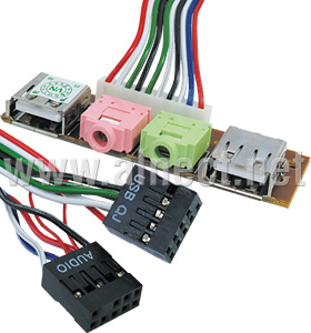 Fornt panel ini digunakan untuk menyediakan 2 (dua) port USB 2.0 dan 3.5mm Audio Output + Mic dari pin soket yang biasanya sudah terintegrasi di mainboard PC lewat kabel yang sudah terintegrasi pada panel ini agar mudah dijangkau dan dipasangkan perangkat. Front Panel ini biasanya diletakkan di depan casing komputer desktop (PC).