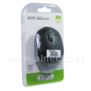 Mouse Robot M210 adalah mouse nirkabel 2.4GHz untuk komputer yang sangat cocok untuk bekerja di rumah dan di kantor. Dilengkapi receiver Nano USB yang dapat disematkan kedalam bodi mouse-nya serta dilengkapi dengan tombol on/off dan teknologi Smart Power Saving untuk meningkatkan lama penggunaan baterainya. Mouse ini hanya ditenagai satu baterai AA ini dilengkapi sensor optik 1600dpi dan dapat bekerja hingga jarang 20 meter (tanpa halangan).