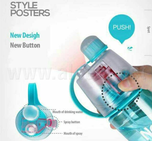 Satu botol dilengkapi dengan dua fungsi, Selain sebagai botol minum, botol ini memiliki lubang untuk menyemprotkan air dari dalam botol dengan semprotan yang kencang. Rasakan kesegaran percikan air dari botol minum sprayer. Untuk menggunakan sprayer ini dilengkapi dengan tombol yang dapat ditekan pada bagian samping tutup botol.