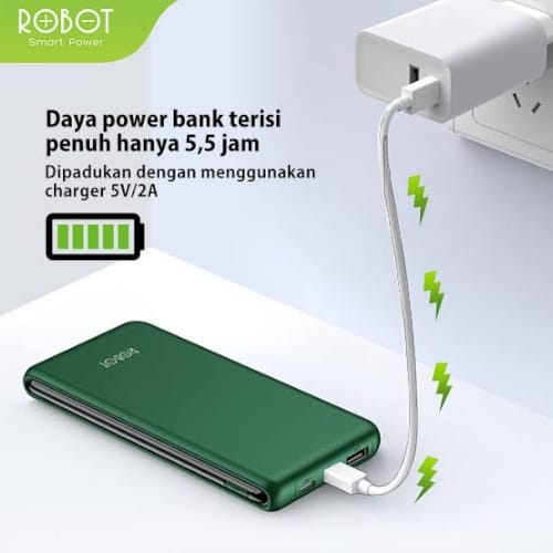 Deskripsi PowerBank ROBOT 10000mAh RT180 Dual Input Port Type C & Micro USB - Putih