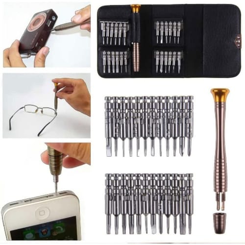 Tersedia 24 jenis kepala obeng seperti torx, philips, minus, penta, y, dll. Semua kebutuhan obeng Anda tersedia dalam satu paket ini. Sangat berguna terutama untuk Anda yang suka mengoprek smartphone / iPhone.