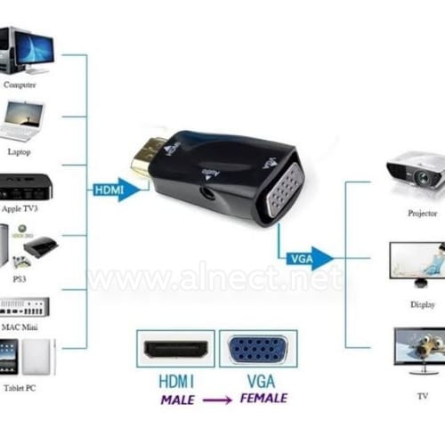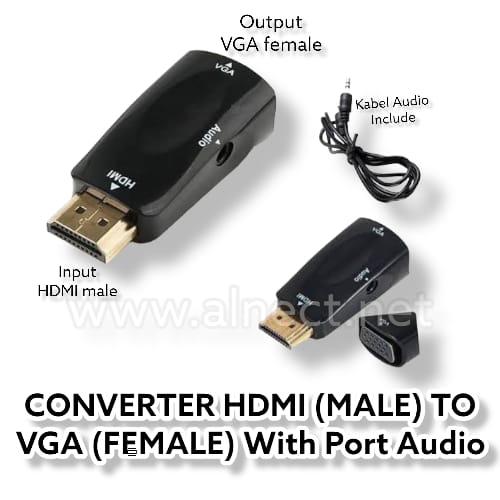 Deskripsi Converter HDMI to VGA with Port Audio - Full HD 1080p (Hitam & Putih )