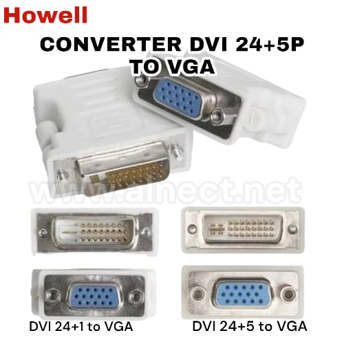 Alat untuk mengubah (gender) port DVI-I (24+5) menjadi port VGA.