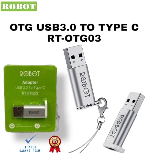Robot RT-OTG03 Adapter USB 3.0 To Type-C Small & Portable OTG Aluminium Adapter Garansi Original Resmi