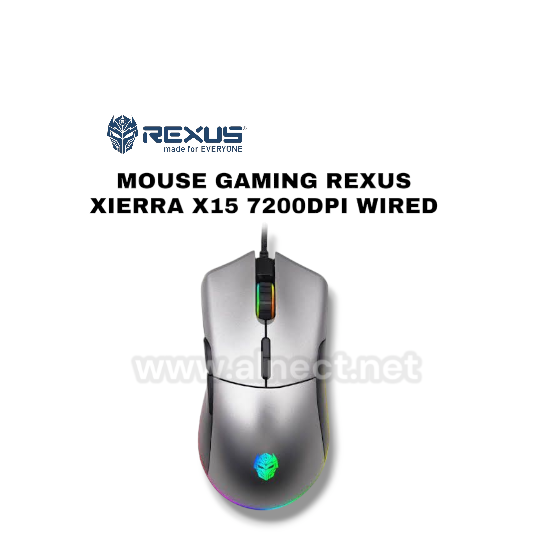 Spesifikasi Mouse Gaming The Next Advanced Gaming Mouse Kini, seri Xierra menghadirkan tipe Xierra X15 sebagai salah satu varian terbaru. Rexus gaming mouse Xierra X15 mengombinasikan desain baru dengan kemampuan teknologi mutakhir di dalamya, seperti penggunaan chipset versi terbaru INSTANT A825. - Dilengkapi dengan on board memory untuk menyimpan pengaturan software di mouse. - Dilengkapi dengan Running RGB LED, dengan 11 mode pencahayaan. - Rexus Xierra X15 dilengkapi dengan chipset sensor berkualitas. - Desain dan berat ideal. Fitur Unggulan On Board Memory untuk Pengaturan Praktis Xierra X15 didukung dengan memory internal terbatas yang bisa digunakan untuk menyimpan pengaturan Macro melalui perangkat lunak. Dengan on board memory, Anda dapat tetap mengaplikasikan pengaturan mouse meski berpindah komputer. Running LED RGB, 11 Mode Pencahayaan Xierra X15 dilengkapi dengan Running LED RGB yang akan berpendar secara halus mengutari garis LED yang ada di samping badan mouse. Tersedia 11 mode pencahayaan yang bisa disesuaikan dengan dengan selera Anda. Level DPI Hingga 7200 Xierra X15 mempunyai level atau tingkatan DPI hingga maksimal 7200DPI. Dengan jangkauan sensitivitas yang luas, mouse makin mudah disesuaikan dengan segala aktivitas dan jenis game. Spesifikasi Tipe konektor: USB versi 2.0 Tombol: Huano, dengan durabilitas 10 juta klik Panjang kabel: 1,8 meter Polling Rate : 1000Hz Frame Rate : 7000fps Jumlah tombol: 7 tombol Level DPI: 6 level peningkatan otomatis, 200 – 7200DPI (dengan software untuk meningkatkan) Berat: 110 gram Dimensi: 129.5 x 75.8 x 34mm Sistem operasi: Win OS