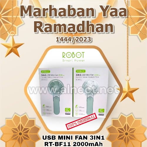 Kini Robot Menghadirkan Mini Fan terbaru yaitu RT-BF11 Dengan Design yang bisa di lipat serta bisa menjadi powerbank dengan kapasitas 2.000mAh