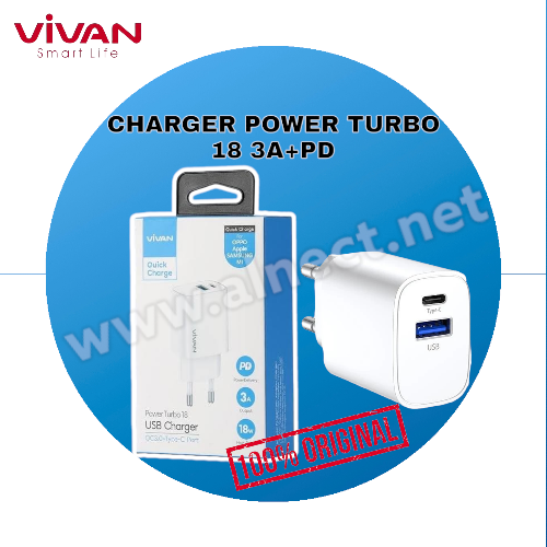 BARU DAN ORIGINAL 100% GARANSI 1 TAHUN RESMI VIVAN  Spesifikasi: Brand : Vivan Type : Power Turbo Color : White Input : 100-240V Output USB : 5V3A/9V2A/12V1.5A Output Type-C : 5V3A/9V2A/12V1.5A Pengenalan Produk: 1. Quick Charging 18W 2. 18W Dual Output Port , dapat mengisi dengan cepat 2 perangkat bersamaa 3. Mendukung PD Quick Charging 4. Terdapat smart temperatur control membuat tidak mudah panas 5. Dengan design bulat menyesuaikan lekukan tangan 6. 6 Smart Protection ( Over charge , Overcurrent Protection , Overvoltage Protection, Short Circuit Protection , Over Power Protection , Temperature Protection 7. Dapat digunakan di seluruh dunia In The Box: 1 x VIVAN Power Turbo 18 PD QC 3A &VOOC 1 x Kartu Garansi