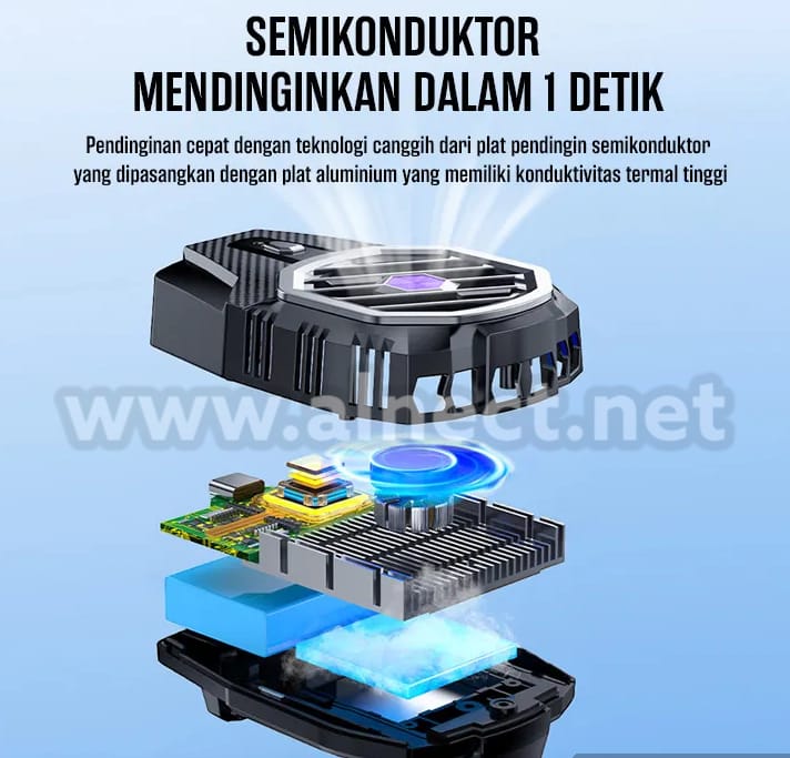 Fan Cooler Bahan SEMIKONDUKTOR, Mendinginkan dalam 1 detik pendingin cepat dengan teknologi canggih dari plat pendingin semikonduktor yang dipasangkan dengan plat aluminium yang memiliki konduktivitas termal tinggi