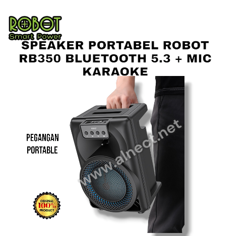 Deskripsi : 1. Konsumsi daya lebih rendah, koneksi lebih cepat dan transmisi 10M yang stabil 2. Efek suara BOMBASTIS 3. Speaker 6.5 inci dengan daya 10W dengan kwalitas suara jernih 4. Dilengkapi mikrofon, kabel mic standar yang cocok untuk meriahkan pesta dan karaokemu 5. Pegangan portable, desain berat yang ringan dan nyaman dibawa kemana saja 6. 4 Mode pemutaran musik 7. Mendukung pemutaran musik dari kartu TF, USB, 3.5mmAUX dan Bluetooth. Kelengkapan : 1x Speaker Robot RB350 1x Microfon 1x Kabel charges Micro Usb