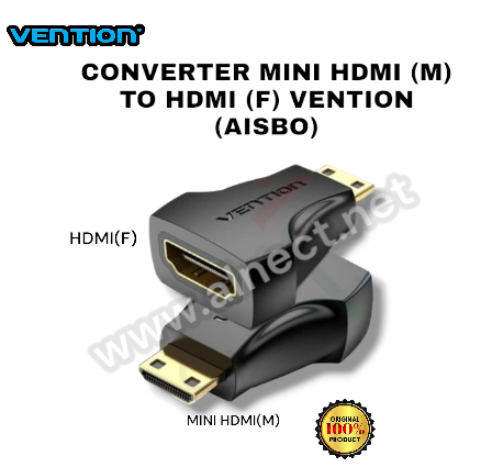 Adaptor Converter Mini HDMI Male to HDMI Female ORIGINAL 100% Spesification: Brand : Vention Name : Mini HDMI Male to HDMI Female Adapter Model : H380HDC / AIS Color : Black Interface Technics : gold plated Resolution : 1080P Shell : PVC Features: Meets RoHS/REACH certification Durable in swapping, oxidation resistance, more stable transmission Ergonomic Design More convenient to swap Environmental-friendly PVC Shell
