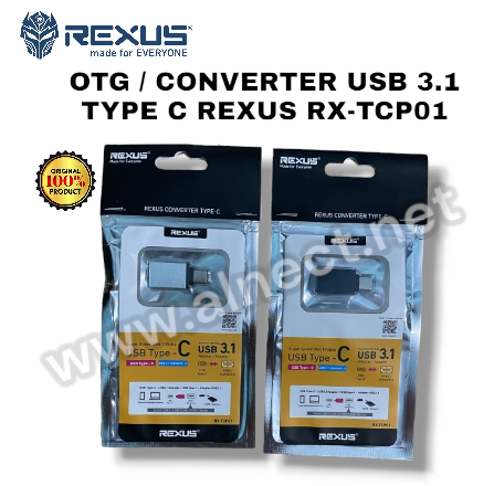B To Type C QUICK CHARGE | CHARGER / DATA ADAPTER | PLUG AND PLAY  Rexus TCP01 adalah USB type-C yang didesain menarik mengikuti gaya kekinian dengan bahan aluminium, cocok digunakan untuk semua jenis sistem operasi dan mengusung teknologi USB versi 3.1. Seperti produk-produk USB hub Rexus lainnya, Rexus TCP01 sangat mudah dihubungkan ke port USB tanpa instalasi atau menggunakan driver penunjang (plug and play). PLUG AND PLAY Dengan sistem tancap dan mainkan (plug and play), Anda tidak perlu lagi menginstall driver pada perangkat Anda sehingga waktu yang Anda gunakan lebih cepat dan efisien. FAST CHARGE Dapat mendukung Fitur Quick Charge jika perangkat, adapator dan kabel yang digunakan sudah mendukung fitur Quick Charge